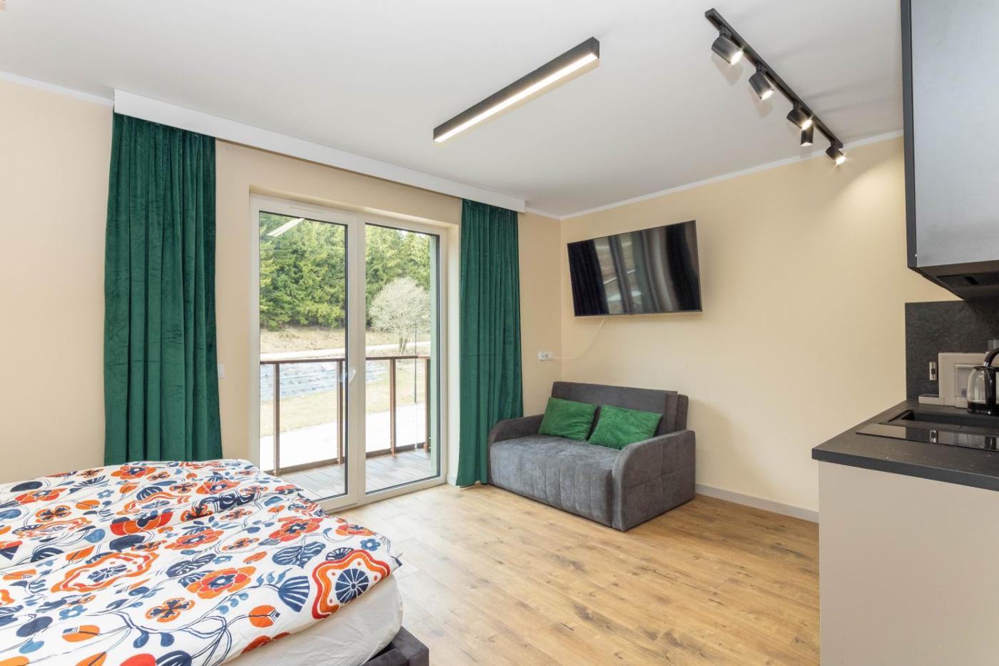 Studio z balkonem. Providing free toiletries, this studio includes a private bathroom with a shower and a hairdryer. The studios kitchenette is available for cooking and storing food. This studio provides a washing machine, a flat-screen TV and a balcony. The unit offers 2 beds. Studio - 3 osobowy. Powierzchnia pokoju ok.: 27 mkw. ;