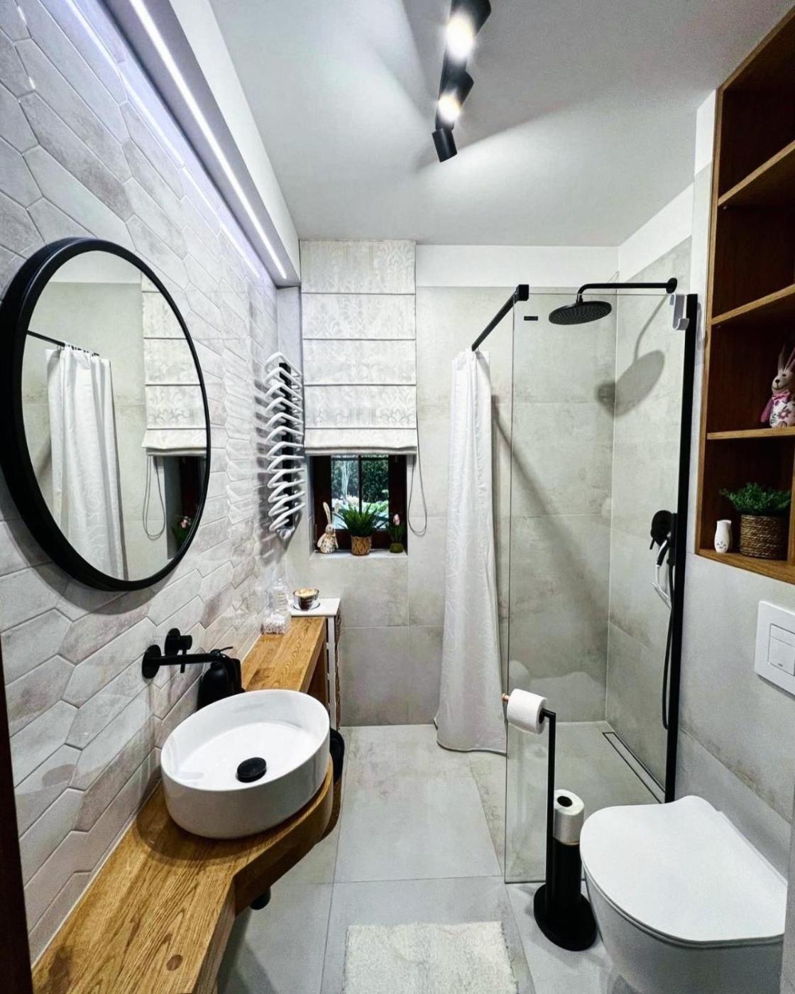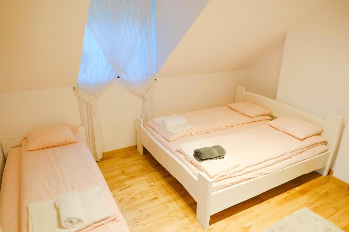 Willa. Guests will have a special experience as this villa features a sauna and a fireplace. This spacious villa includes 1 living room, 5 separate bedrooms and 2 bathrooms with a shower and free toiletries. Guests will find a stovetop, a refrigerator, a dishwasher and kitchenware in the well-equipped kitchen. The villa also features a barbecue. Boasting a terrace with garden views, this villa also offers a private entrance and a flat-screen TV with streaming services. The unit has 6 beds and 2 futons. Willa - 17 osobowy. Powierzchnia pokoju ok.: 350 mkw.